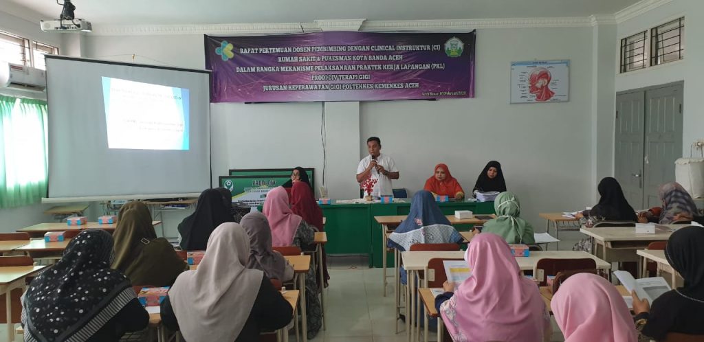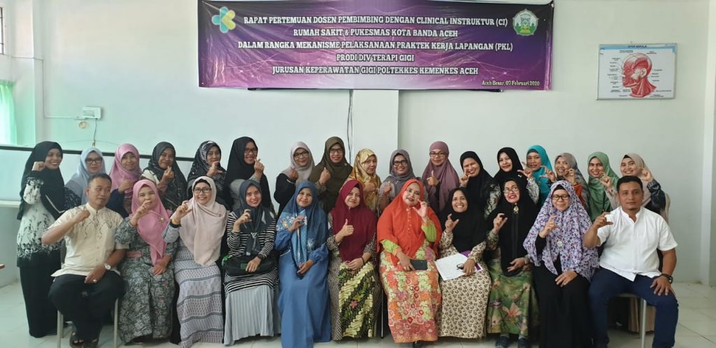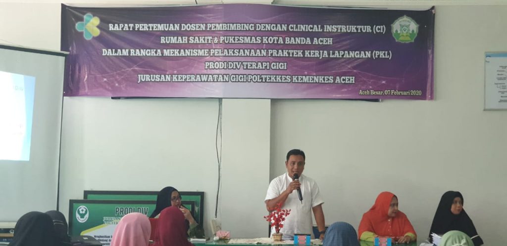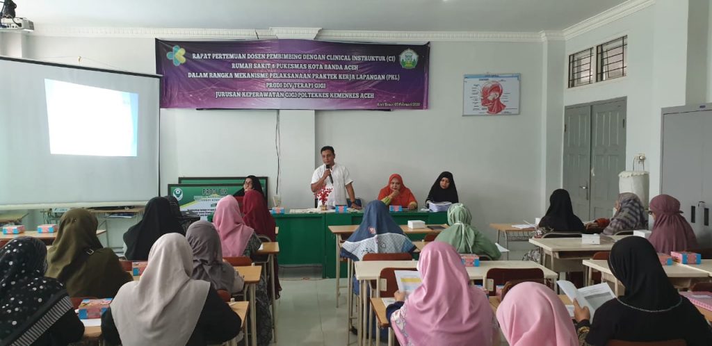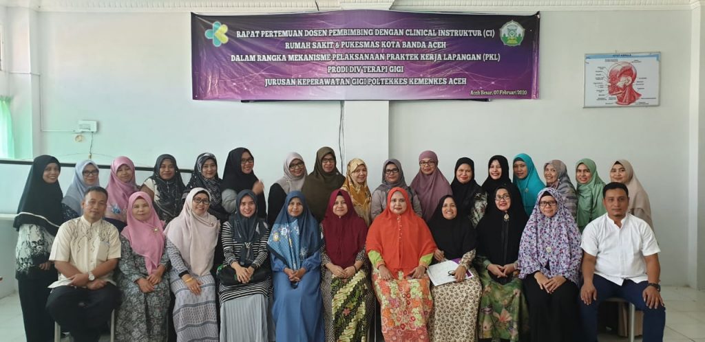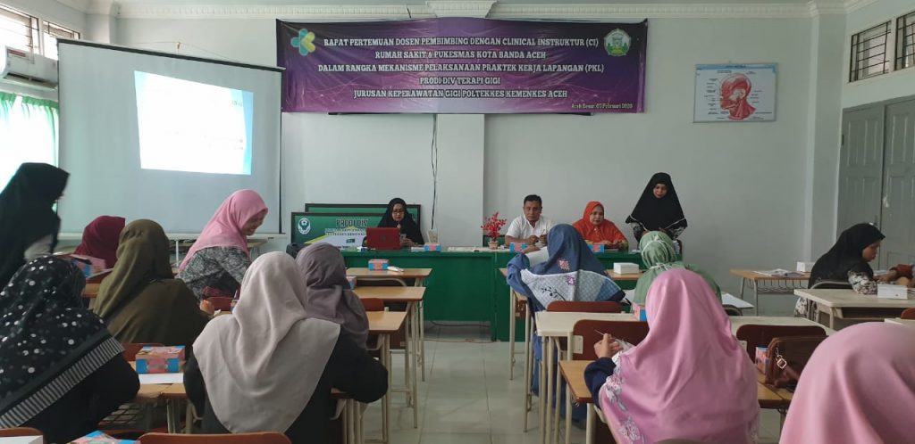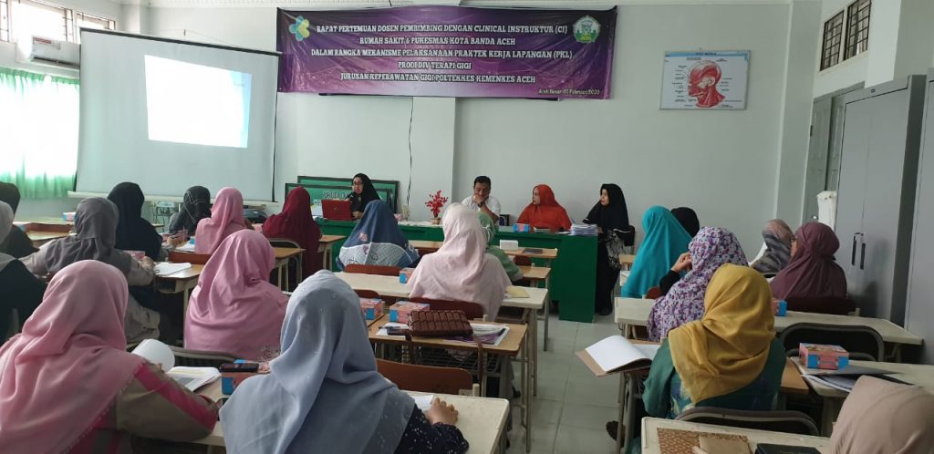 Prodi D4 Terapi Gigi menyelenggarakan Rapat Pertemuan Pembimbing & CI Rumah Sakit, Puskesmas se Kota Banda Aceh dalam rangka Praktek Kerja Lapangan. Dimana rapat tersebut menyepakati mekanisme pelaksanaan PKL di Rumah Sakit dan Puskesmas di Kota Banda Aceh. Ketua Jurusan Keperawatan Gigi melalui Sekretaris Jurusan menyampaikan bahwa rapat membicarakan mekanisme pelaksanaan PKL mahasiswa seperti ini sangat penting dimana kita bisa mengetahui sejauh mana kebutuhan stakeholder dilapangan dg kehadiran mahasiswa PKL di RS dan PKM sehingga Prodi D4 Terapi Gigi Khususnya Jurusan Keperawatan Gigi untuk terus berbenah dalam meningkatan mutu lulusan yang siap terjun kemasyarakat.